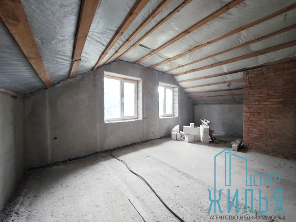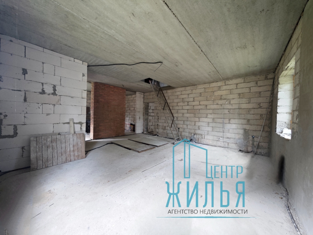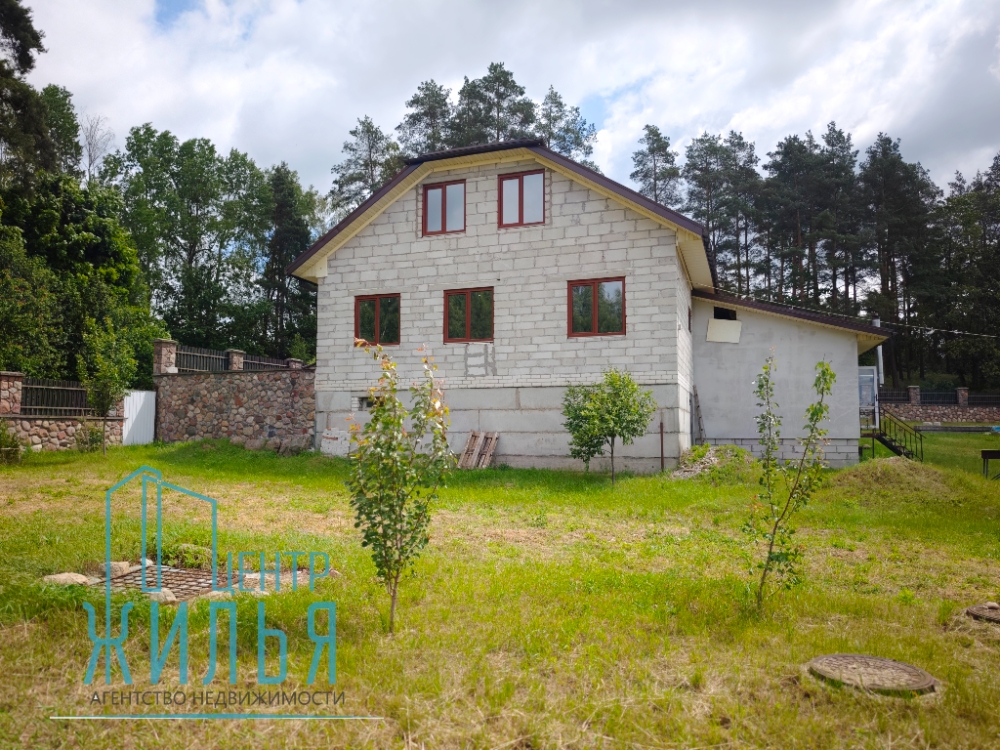 Основное строение выполнено из блока и кирпича, перекрытия железобетонные . Общая площадь с учётом мансардного этажа и подвала составляет 309 м.кв. На первом этаже , площадью 101.8 м.кв располагается просторная и светлая гостиная 32 м.кв., 2 большие комнаты 18.9 и 12.6 и к.в , санузел гардеробная и кухня. Мансардный этаж -72 м.кв., состоит и 3 спален, гардеробной и второго санузла.Потолки высотой 2,9 м и большое количество окон создают ощущение воздуха и простора, из окон открывается прекрасный вид на лес.Дом с черновой отделкой, установлены стеклопакеты, кровля -гибкая черепица, сделана разводка электрики, сантехники. Дом законсервирован в 2025 году, готовность 77%. На данном этапе вы можете обустроить и сделать ремонт под свой вкус.