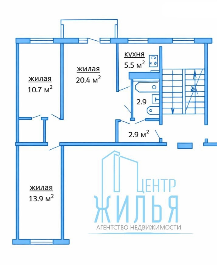 Общая площадь: 58 м2