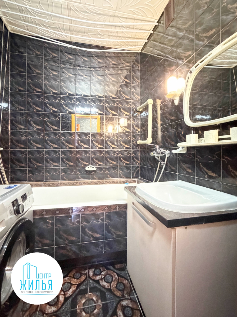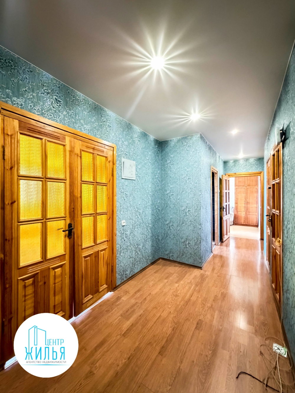 Во всех комнатах – стеклопакеты ПВХ (за исключением, одной из спален – деревянное), стены – обои, пол – ламинат, потолок – натяжной, сан.узел (раздельный) – плитка.